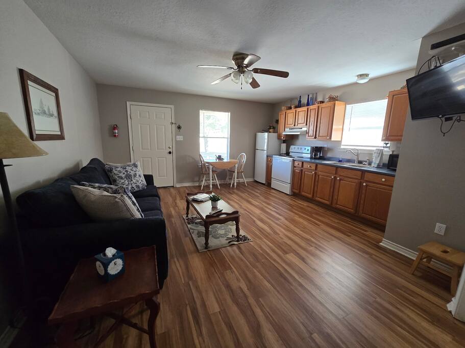 79 Honey Yellow Sunday House is a charming, tiny home in peaceful Coldspring, Texas, perfect for slowing down and unplugging. This cozy retreat features 1 bedroom, 1 bathroom, and a full kitchen for a comfortable stay. Ideally located for outdoor fun, you’re 1.1 miles from Double Lake trails, 13 minutes from Browders Boat Ramp, and 11 minutes from Wolf Creek Boat Ramp—an ideal home base for adventure or rest.